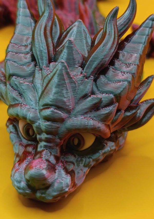 Bring fantasy to life with Aurora the Magical Dragon! This stunning 30 cm long figurine is created using multicolor 3D printing, blending shades of turquoise and magenta into a mesmerizing, color-shifting masterpiece. Aurora is more than just a decoration – she’s a character full of charm, perfect for shelves, desks, or as a unique gift for dragon lovers, fantasy fans, or 3D print enthusiasts.